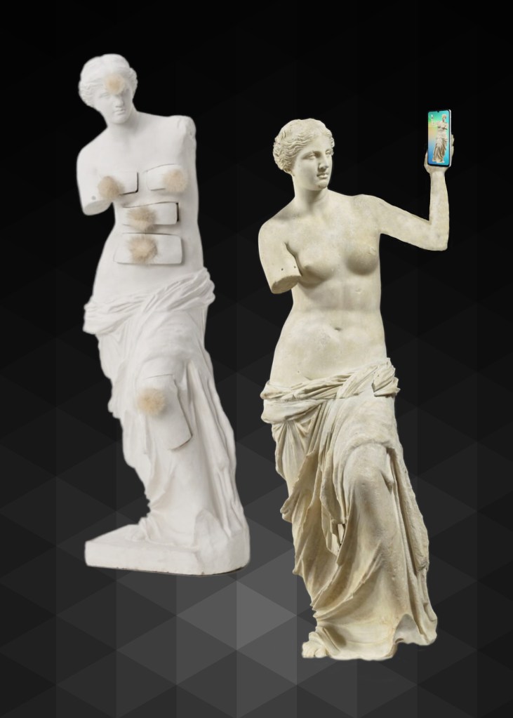 Venus has always driven humans a bit crazy. The fantastic story of her discovery on the island of Melos in Greece, then the deals made to acquire her, moving her about and her final arrival at the Louvre in Paris is a fantastic tale. It is filled with Venus driven desire, greed, avarice, and adoration. She continues to use her charms to drive our own behaviors and vanities.